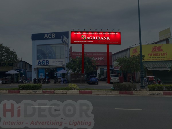 - Chúng tôi với hơn 10 năm kinh nghiệm, đã thi công hàng trăm bảng hiệu ngân hàng, bao gồm cả hệ thống Agribank.